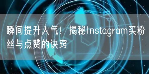在Instagram这个充满创意和活力的平台上,如何快速提升自己的影响力并吸引更多关注者呢?除了发布高质量的内容外,买粉丝和点赞也是一种有效的方法。本文将为你揭示Instagram买粉丝与点赞的诀窍,帮助你瞬间提升人气!
