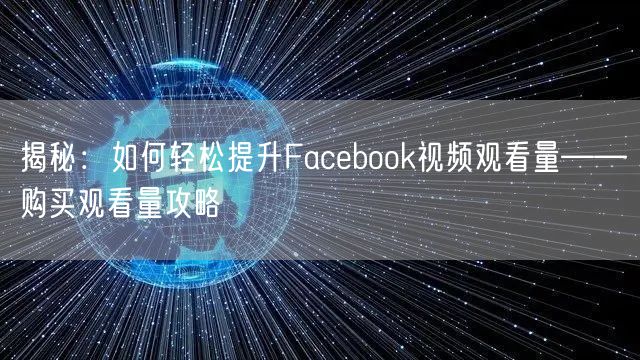 随着社交媒体的发展,Facebook已经成为人们获取信息、交流互动的重要平台之一。同时,越来越多的企业也开始将营销战略转向社交媒体,尤其是利用Facebook平台进行视频推广。但是,如何提高Facebook视频的观看量却是很多企业面临的一大难题。本文将为您揭秘一种轻松提升Facebook视频观看量的方法——购买观看量攻略。