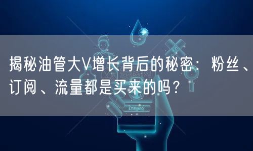 近期网络上不断传出各种质疑声音,许多油管大V的粉丝、订阅和流量是否都是通过购买手段获取的。这引发了广泛的关注和热议。本文旨在深入探讨这一问题,揭秘油管大V增长背后的秘密。