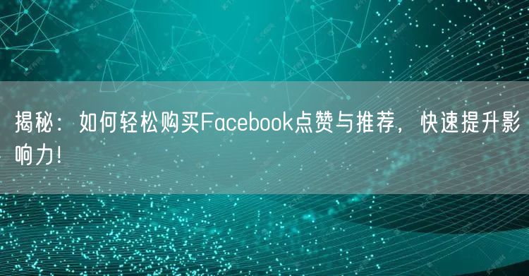 在Facebook这个庞大的社交平台上,拥有高点赞和推荐的数量是提升个人或品牌影响力的关键。本文将向你揭秘如何轻松购买Facebook点赞与推荐,助你在这个平台上迅速崭露头角。