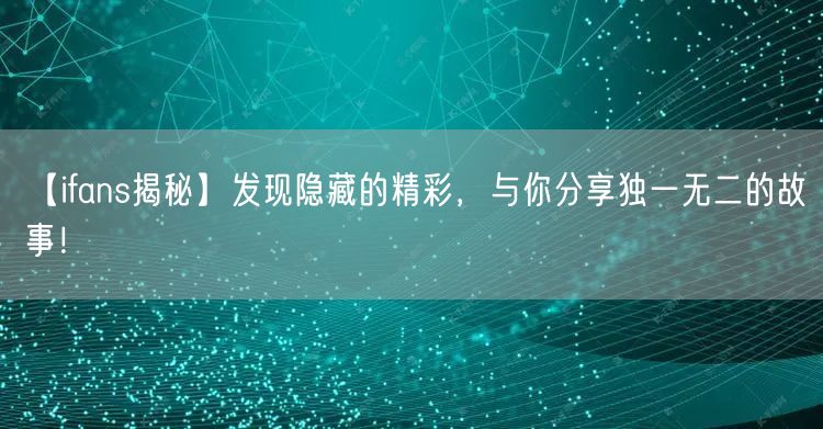 【ifans揭秘】带你走进一个充满神秘与精彩的世界!这里,我们将为你揭示那些隐藏的故事,让你感受独一无二的体验。