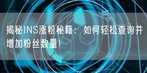 在Instagram上拥有众多的粉丝,对于个人品牌、商家以及网红来说,无疑是一种巨大的优势。那么,如何轻松查询并增加粉丝数量呢?本文将为你揭秘INS涨粉秘籍,让你轻松提升粉丝数量!