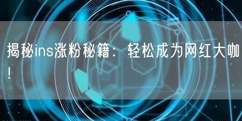 揭秘ins涨粉秘籍:轻松成为网红大咖!