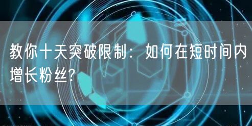 通过以上的方法,你可以在十天内突破限制,实现粉丝数量的快速增长。但是要注意的是,粉丝增长只是开始,更重要的是如何维护和运营好你的粉丝群体,持续提供有价值的内容,保持与粉丝的互动和沟通。只有这样,你的影响力才能真正得到提升。