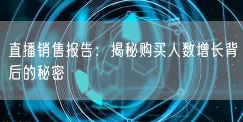 随着互联网的普及和科技的快速发展,直播销售逐渐崭露头角,成为商家吸引消费者的新宠。越来越多的人选择在直播间里购物,背后究竟隐藏着怎样的秘密?本报告将为你揭秘购买人数增长背后的真相。