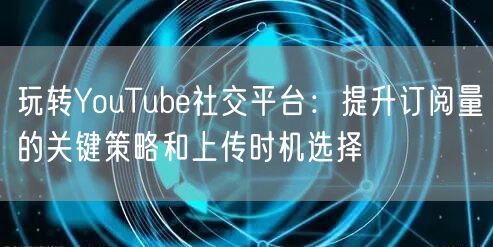 随着数字化时代的到来,YouTube已成为全球最大的社交平台之一。对于希望通过YouTube建立个人品牌、推广产品或吸引观众的人来说,提升订阅量至关重要。本文将为你揭示玩转YouTube社交平台的关键策略和上传时机选择,助你实现订阅量的快速增长。