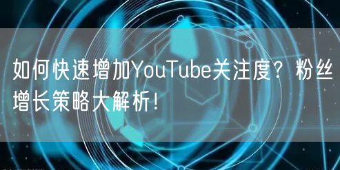 通过以上的策略分析,我们可以发现,要想快速增加YouTube关注度,需要我们从内容创作、视频推广、SEO优化、合作与互动以及持续数据分析与优化等方面入手。只有不断优化和改进,才能吸引更多粉丝的关注,实现订阅量的大幅增长。希望本文的解析能对你有所帮助,祝你在YouTube上取得更大的成功!