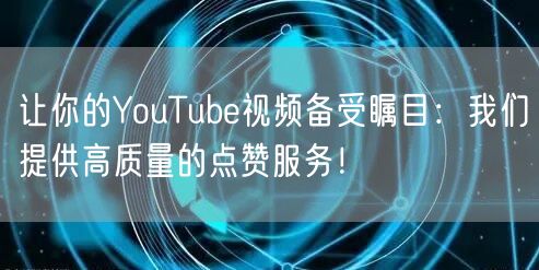让你的YouTube视频备受瞩目:我们提供高质量的点赞服务!