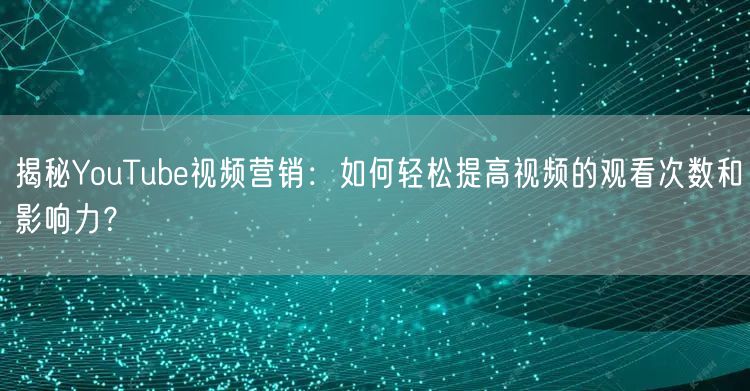 揭秘YouTube视频营销:如何轻松提高视频的观看次数和影响力?