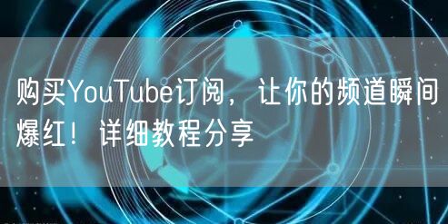在YouTube上,一个频道的成功与否很大程度上取决于其订阅数量。如何快速提升频道订阅量,让内容得到更多曝光和关注?购买YouTube订阅是一种有效的策略。本文将为你详细解析如何购买订阅,让你的频道瞬间爆红!