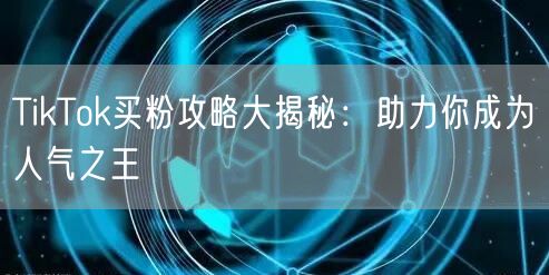 TikTok已成为全球最热门的社交媒体平台之一,拥有庞大的用户群体和无限的创意空间。在这个平台上,许多用户通过分享短视频成为了人气之王。本文将为你揭秘TikTok买粉攻略,助力你成为人气之王。