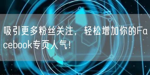 本文将为你介绍如何通过优化内容创作和采用有效的策略来吸引更多粉丝关注你的Facebook专页,从而提升专页人气。我们将深入探讨如何运用SEO优化策略来提升你的Facebook内容质量和可见度,让更多人发现并关注你的专页。通过遵循这些策略和建议,你将轻松提升你的Facebook影响力,让你的内容更具吸引力。让我们一起开始吧!