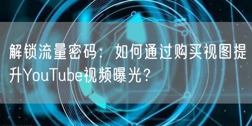 在当今数字化时代,社交媒体平台如YouTube已经成为人们获取信息、娱乐和社交的重要渠道之一。对于个人或企业来说,通过YouTube推广自己的内容是一个不可忽视的策略。然而,如何提升YouTube视频的曝光率,吸引更多观众呢?本文将为您揭示如何通过购买视图解锁流量密码,提升视频的曝光率。