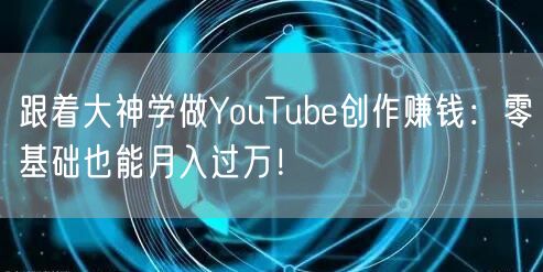 跟着大神学做YouTube创作赚钱,零基础也能月入过万!只要你拥有热情和才华,并持续努力学习和提升自己的能力,就一定能在YouTube上找到自己的舞台,实现创作梦想。让我们一起加入YouTube创作的行列,成为赚钱达人!
