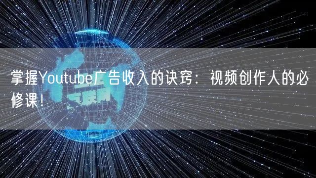 随着网络视频内容的日益丰富,越来越多的视频创作人开始在Youtube平台上发展自己的事业。除了通过视频内容本身的收益,广告收入也成为视频创作人重要的收入来源之一。那么,如何掌握Youtube广告收入的诀窍,成为一名成功的视频创作人呢?本文将为你揭示其中的秘诀。