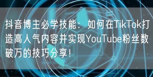 通过以上技巧的实施,抖音博主可以在TikTok和YouTube上成功打造高人气内容并实现粉丝数破万。不断学习和创新是成功的关键。希望本文的分享能为广大抖音博主带来启示和帮助。