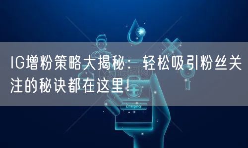 要想在IG上轻松吸引粉丝关注,需要优化内容创作、运用社交媒体营销手段以及掌握一些粉丝增长技巧。通过本文的介绍,希望能够帮助你在IG平台上获得更多的关注和影响力。