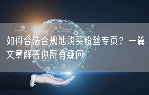 在社交媒体日益发展的今天,拥有大量的粉丝意味着更大的影响力和传播力。然而,如何合法合规地购买粉丝专页,成为了许多用户关注的焦点。本文将为你揭示其中的秘密。