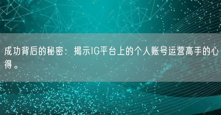 随着互联网的普及和社交媒体的兴起,IG平台已成为个人品牌建设和业务推广的重要渠道之一。许多个人账号运营高手通过精准的策略和不懈努力,在IG平台上取得了显著的成功。本文将揭示这些运营高手背后的秘密,分享他们的宝贵经验和心得。