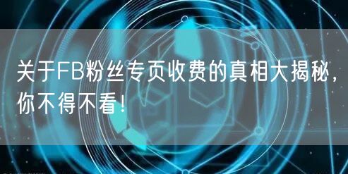 在数字时代,社交媒体成为了人们生活中必不可少的一部分。其中,Facebook(简称FB)作为全球最大的社交媒体平台之一,吸引了众多企业和个人开设粉丝专页,以扩大品牌影响力,增加产品销量。然而,关于FB粉丝专页收费的问题一直备受争议,本文旨在揭示其中的真相,让读者对FB粉丝专页收费有更深入的了解。