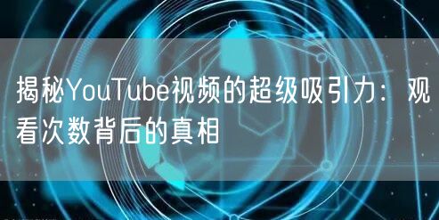 随着互联网的普及,越来越多的人喜欢在YouTube上观看视频。有些视频在短时间内就能获得极高的观看次数,成为网红爆款。那么,这些视频的超级吸引力究竟从何而来?背后又隐藏着怎样的真相呢?接下来,我们就来一起揭秘。
