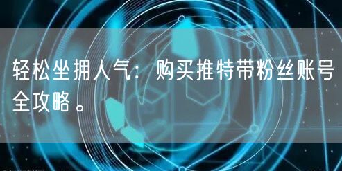 在社交媒体时代,拥有一个受欢迎的账号对于个人品牌推广和营销来说至关重要。然而,从零开始建立粉丝群体需要时间和努力。对于那些希望快速获得人气并扩大影响力的用户来说,购买带粉丝的推特账号成为了一种选择。本文将为你提供一份全面的购买推特带粉丝账号的攻略,帮助你轻松坐拥人气。
